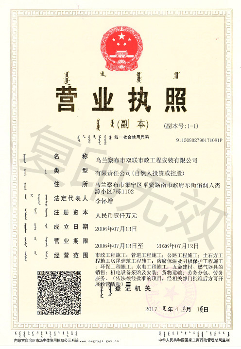 烏蘭察布市雙聯(lián)市政工程安裝有限公司
